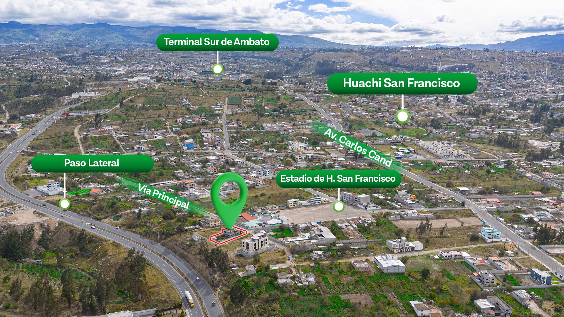 Ubicada en el sector Huachi San Francisco, en la parroquia Huachi Grande de Ambato, esta propiedad representa una excelente oportunidad de inversión gracias a su estratégica cercanía al paso lateral del Terminal del Sur, zona de alto flujo vehicular y comercial.