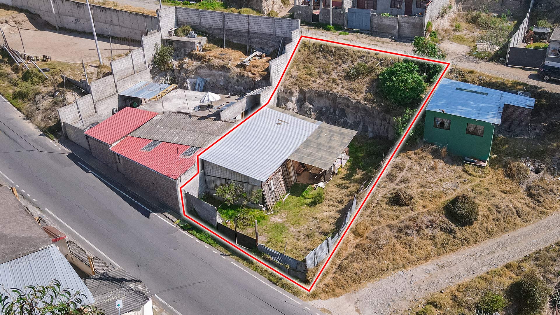 La propiedad cuenta con 347,14 m² de terreno y 70,36 m² de construcción, dispone de una cubierta ideal para taller, bodega o actividad productiva, y se encuentra equipada con todos los servicios básicos: agua potable, energía eléctrica, alcantarillado y alumbrado público. Además, tiene acceso a transporte público.