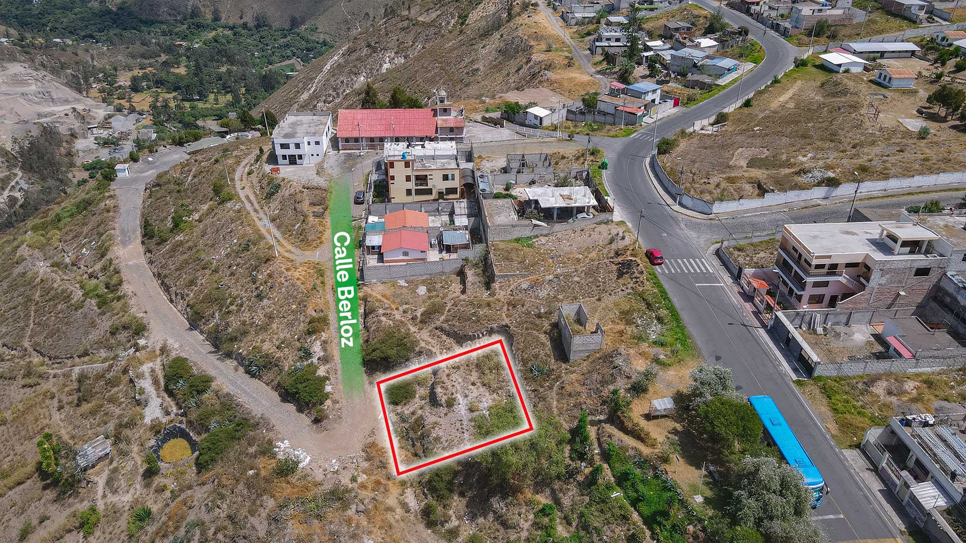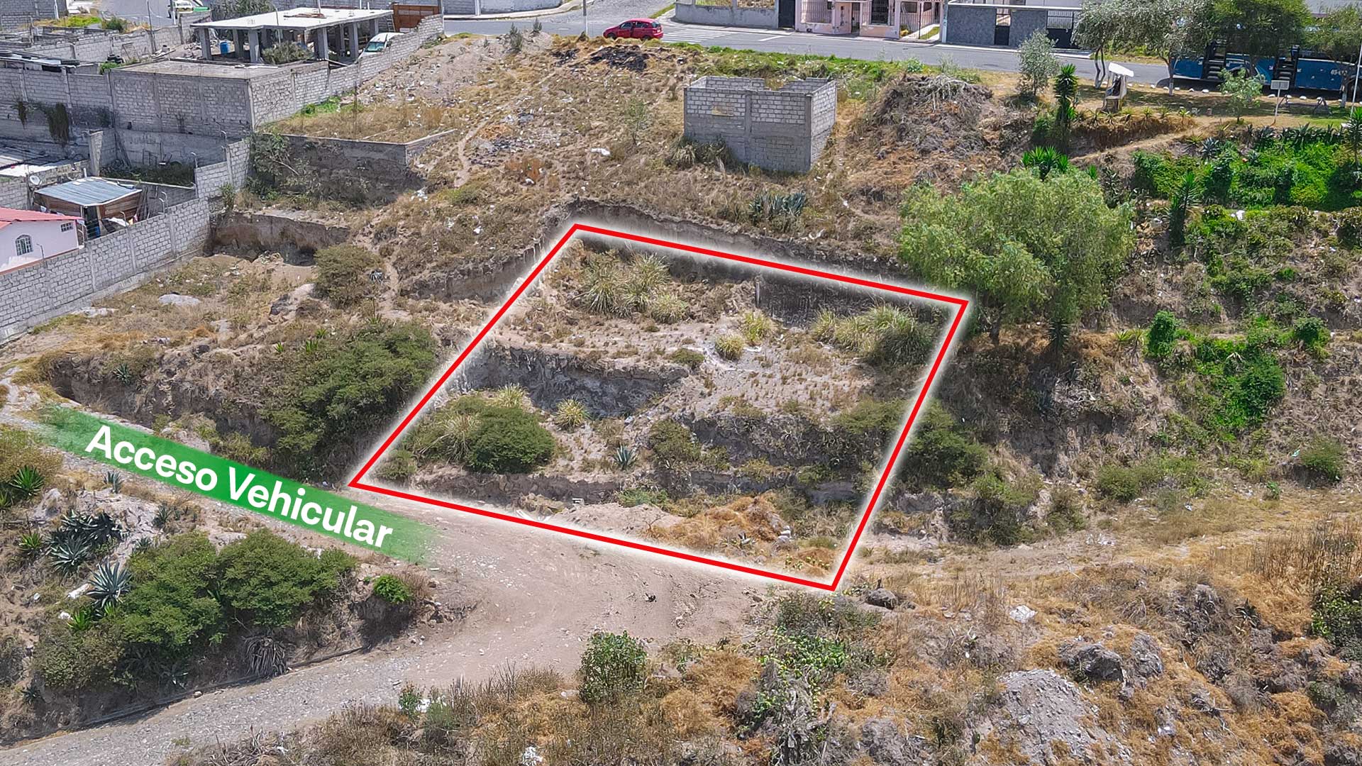 El inmueble se encuentra sobre la calle Aram Jachaturian (Lote 2), entre la Escuela Gran Muralla, lo que facilita su ubicación y acceso. Cuenta con una forma irregular tipo triángulo y un área total de 200 m², ideal para la construcción de vivienda.