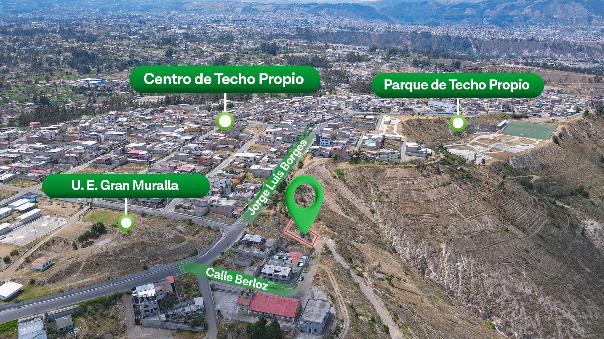 Terreno urbano en venta ubicado en el sector Techo Propio, parroquia Pishilata, una zona residencial con buena conectividad y desarrollo urbano en la ciudad de Ambato.